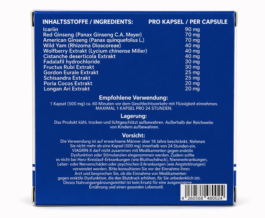 Innerhalb von 24 Stunden sind maximal 1 Kapsel Viagrin-X einzunehmen.