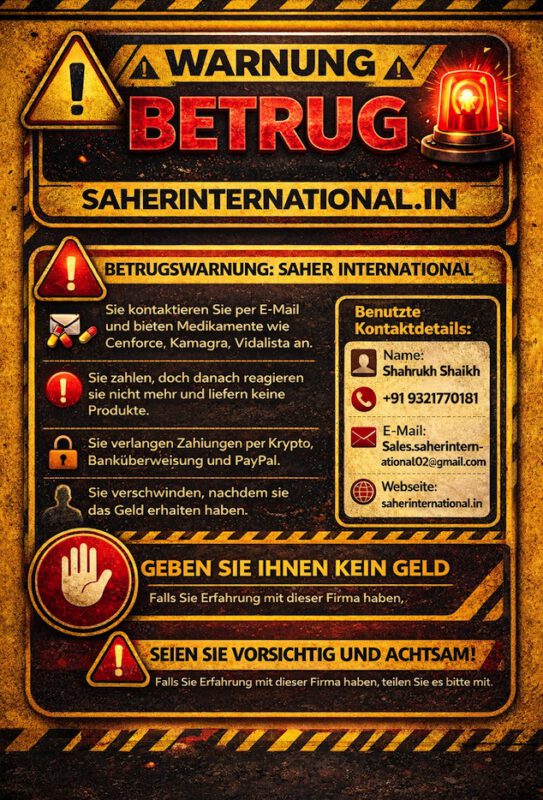 WARNUNG: Saher International – Möglicher Betrug (saherinternational.in)